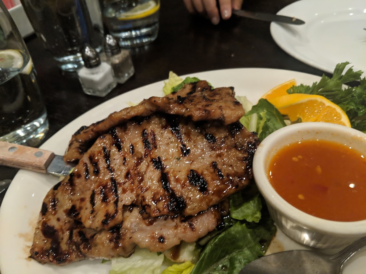 The menu is a treasure trove of Thai delights that cry out for your attention. Seafood lovers will rejoice in the Basil Catfish, tender pieces of deep-fried catfish sautéed with colorful bell peppers, bamboo shoots, and fragrant sweet basil, all for just $29.00. Or indulge in the Garlic Prawns, elegantly presented with a rich buttery garlic sauce that clings lovingly to perfectly cooked prawns, accompanied by fresh vegetables. If you're craving a spicy kick, the Chili Paste Seafood offers a harmonious blend of prawns, scallops, calamari, and salmon, sautéed with a robust chili paste, bringing a fiery yet tantalizing flavor to each bite at $29.00.